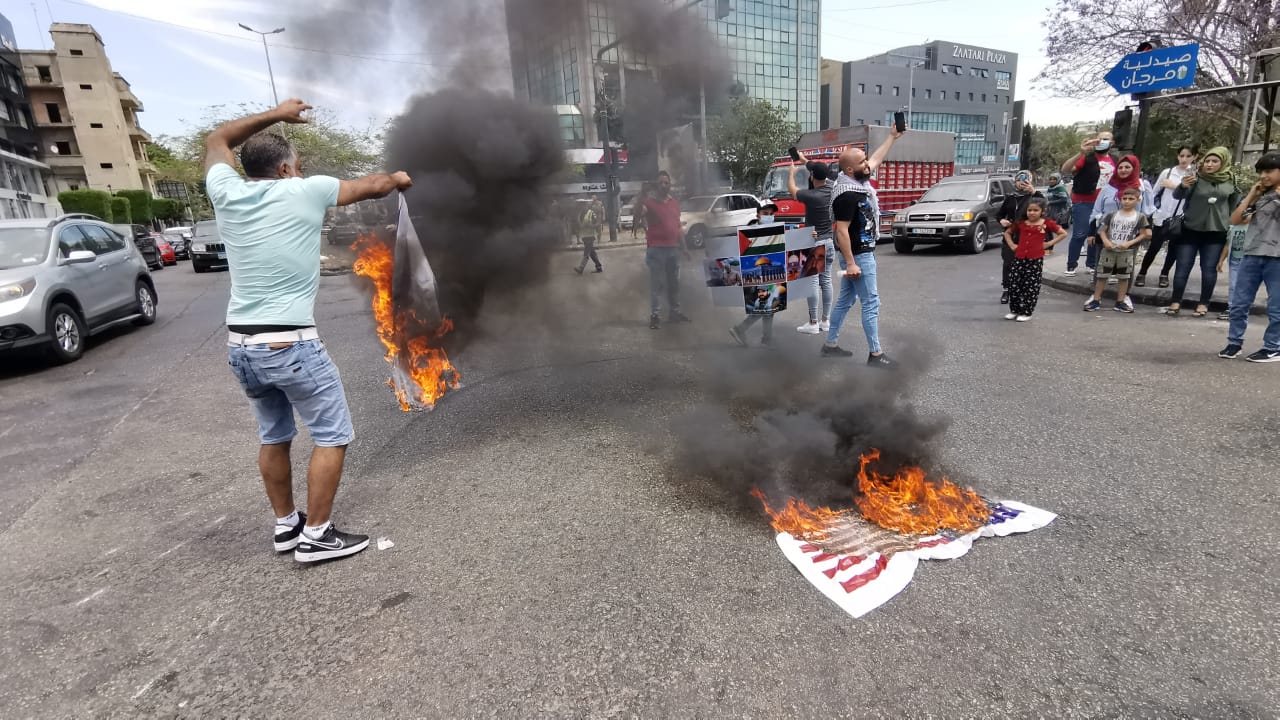 محطات نيوز – صيدا – شهد تقاطع إشارة إيليا في صيدا، في إطار التحركات التي تشهدها مدينة صيدا نصرة لفلسطين والقدس والاهالي في قطاع غزة، حرق العلمين الاسرائيلي والاميركي وسط الطريق، من قبل عدد من الشبان، وسط هتافات تندد “بالاعتداءات الصهيونية الاسرائيلية واستهداف المدنيين العزل في قطاع غزة”.